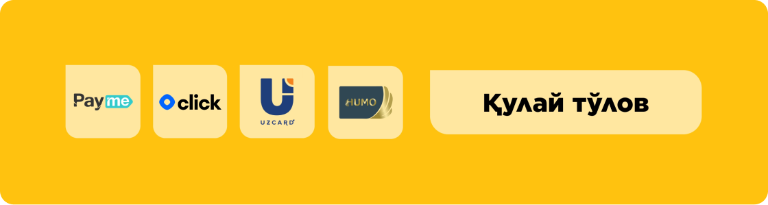 Саволларингиз борми? Харидингиз учун тўловни амалга ошириш сизга қийинчилик туғдиряптими? «Қайта алоқа» учун буюртма беринг ва бизнинг мутахассисларимиз юзага келган ҳар қандай муаммони ҳал қилишади.